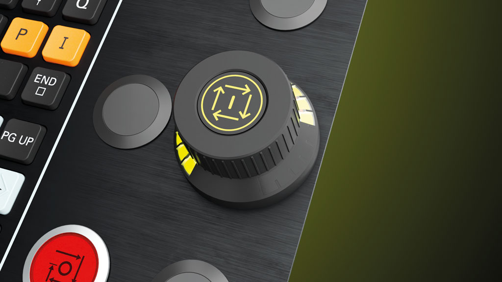 Two potentiometers in one multi-functional control knob: the new OC 310 override controller facilitates working with a TNC7, since the user can now regulate both the feed rate and rapid traverse with just one operating element. The user is assisted by the new “Conditional stop” software function, for intuitive, convenient and one-handed proving-out of NC programs. The user simply defines breakpoints in the NC program at which the control will stop during program run, such as before a tilting function, when the tool is changed, or when the machining feed rate changes to rapid traverse. The override controller vibrates to generate tactile feedback, simplifying the user's workday.